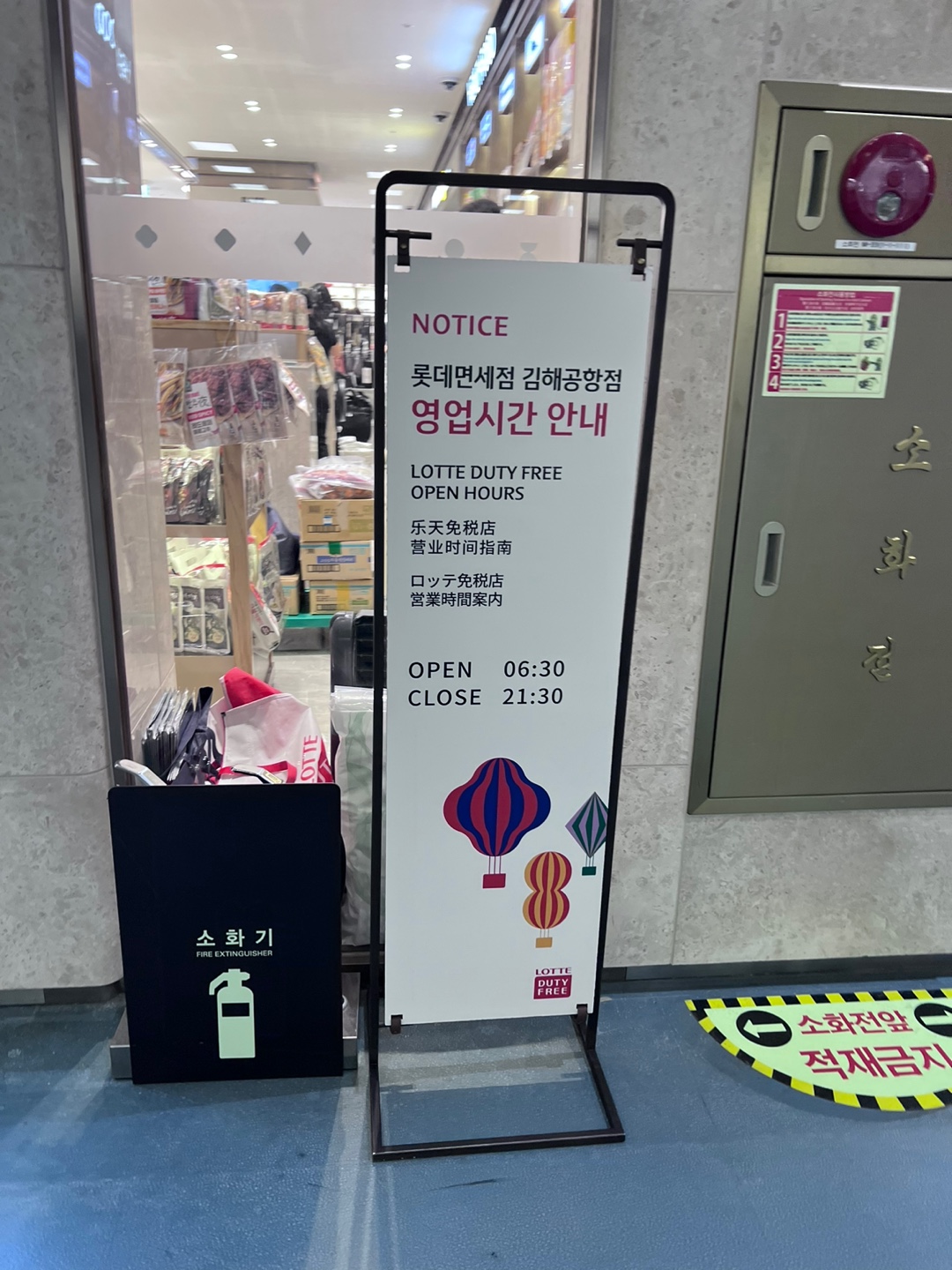 김해공항 면세점은 OPEN 06:30 CLOSE 21:30입니다.